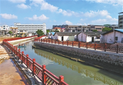 指著新砌的整齊劃一的河堤擋墻,龍先生告訴記者,原來河涌?jī)砂抖褲M了垃圾,經(jīng)常有老鼠出沒。整治工程實(shí)施后,岸邊的垃圾全部清理干凈,新砌了河堤擋墻,沿岸建設(shè)步道,基尾涌一河兩岸“大變身”,環(huán)境越來越美了?!耙郧皟砂独粩嘈Q食水面,整治工程對(duì)河涌實(shí)施清淤,河面開闊了,水質(zhì)也變清了?!饼埾壬鷱牡厣蠐炱鹨活w石頭拋入河涌,向記者標(biāo)識(shí)了一下整治前河涌的寬度,清淤過后河面變寬了3米左右。