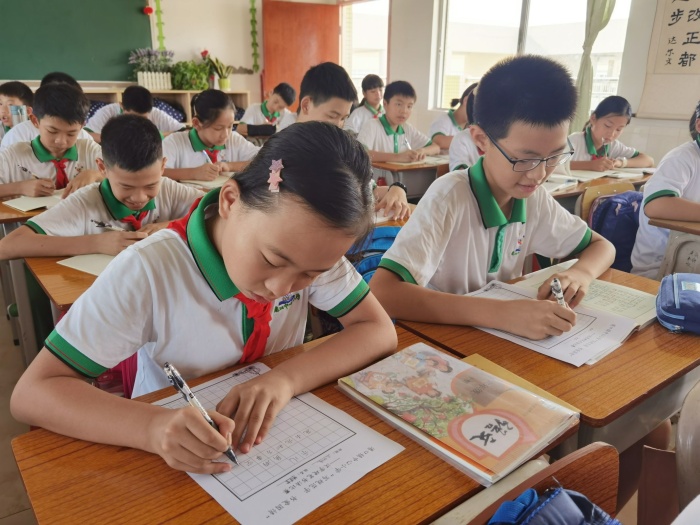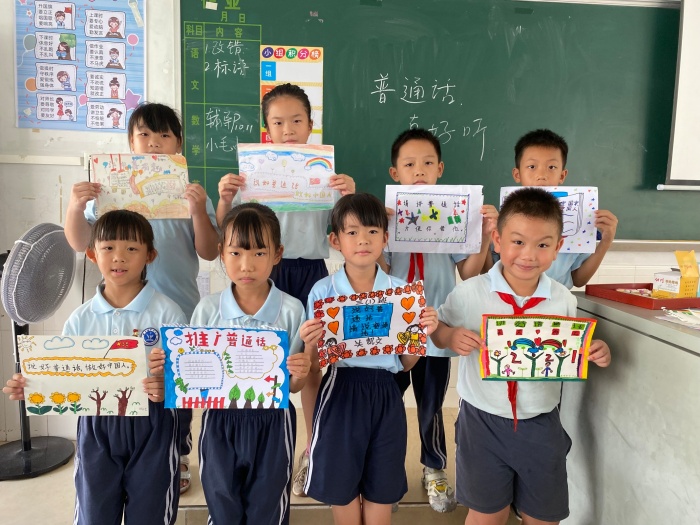 各年級也舉辦了特色鮮明的推廣普通話活動。一年級的小同學化身小老師,用標準的普通話向長輩們誦讀課文或講述生動有趣的故事,讓推普活動走進家家戶戶。二年級的紅領(lǐng)巾宣講員們同學們字正腔圓、聲情并茂地講述了英雄先烈們的英勇感人事跡,傳承紅色基因。三年級的同學們?yōu)橥破栈顒釉O(shè)計了一幅幅版式精美的推廣普通話宣傳標語。四年級老師和同學們精心挑選誦讀內(nèi)容進行誦讀經(jīng)典詩文比賽。千年流傳的文化古韻,伴著稚嫩的聲音,為校園增添了濃厚的文化韻味。五年級開展了繪制“講普通話,寫規(guī)范字”手抄報比賽活動。同學們通過精美的手抄報,用實際行動響應(yīng)祖國“推普”號召,抒發(fā)自己的愛國情!漢字硬筆書法比賽在六年級中開展。同學們筆尖流轉(zhuǎn)出一行行優(yōu)美的漢字,在字里行間發(fā)現(xiàn)中華文字的魅力,發(fā)現(xiàn)中華文化的深厚內(nèi)涵。