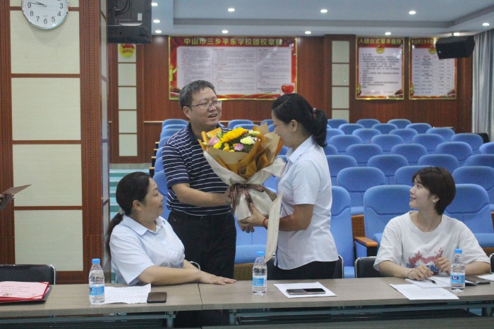 三鄉(xiāng)鎮(zhèn)黨委委員陳偉軍親自走到每一位獲獎(jiǎng)教師代表身邊,送上榮譽(yù)證書和鮮花并致以節(jié)日的關(guān)懷和問候,陳委員暖心的舉動(dòng)感動(dòng)了在場(chǎng)的每一位教師。