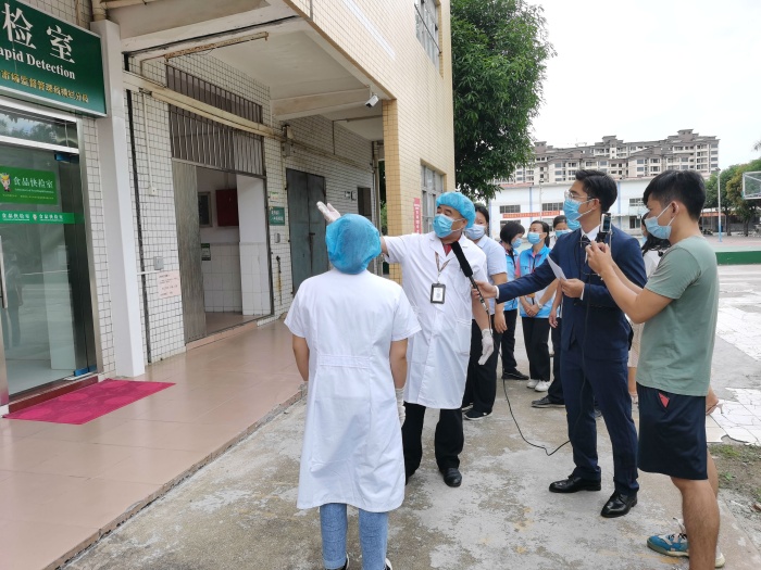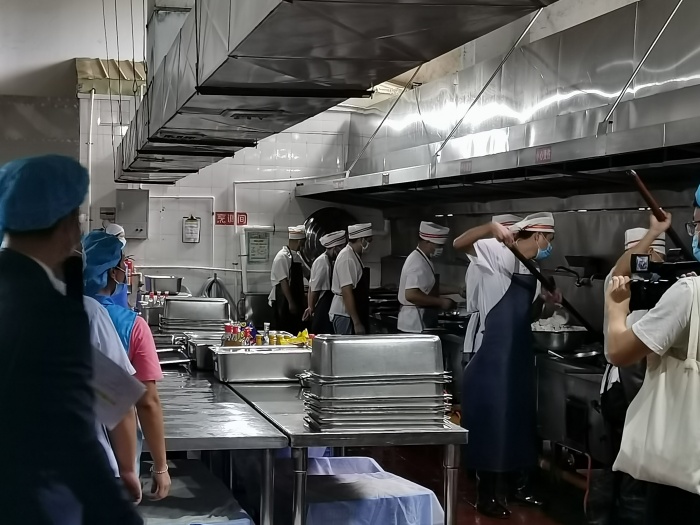 在網(wǎng)絡(luò)直播鏡頭的實(shí)況直播下,檢查組一行首先來(lái)到學(xué)校的食品快檢室,對(duì)食品安全監(jiān)測(cè)設(shè)備、監(jiān)測(cè)流程、監(jiān)測(cè)記錄、食品安全公示情況等進(jìn)行了詳細(xì)的檢查和實(shí)況直播。隨后,檢查組深入到學(xué)校食堂的每一處,對(duì)食堂防疫措施、食品采購(gòu)、食品清洗、食品加工、食品檢測(cè)、食品衛(wèi)生、食材的存儲(chǔ)和來(lái)源、餐具消毒、大米質(zhì)量、菜品種類(lèi)等情況進(jìn)行了詳細(xì)地檢查,視頻攝制組也對(duì)現(xiàn)場(chǎng)的情況進(jìn)行了實(shí)況直播。