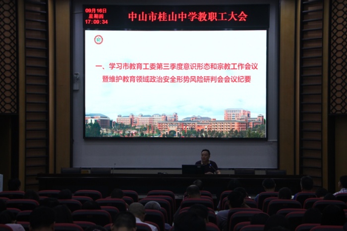 為持續(xù)深入學習領會習近平總書記“七一”重要講話精神,9月16日下午,桂山中學在德馨樓一樓報告廳開展主題黨課學習。主題黨課的主要學習內容是習近平總書記“四個自信”和“七一”重要講話精神中蘊含的“中國之治”與“中國之智”。主題黨課由學校黨委委員劉云平同志主持。