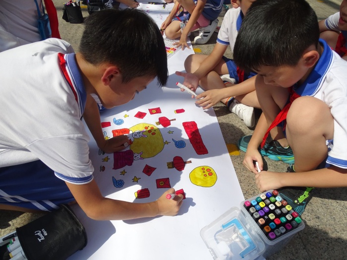此次活動(dòng)以周瑞珍校長(zhǎng)為總指揮,德育處、教導(dǎo)處做好前期部署,不同年級(jí)分別開(kāi)展不同的活動(dòng)。一至三年級(jí)的學(xué)生變身小小藝術(shù)家,開(kāi)動(dòng)腦筋,親手制作一張張精美的紙盤(pán)創(chuàng)意繪畫(huà),紙盤(pán)上有各種各樣的圖案,如嫦娥、玉兔、月亮等等,構(gòu)圖有趣,顏色鮮艷,一筆一畫(huà)充滿著濃濃的中秋情。四五年級(jí)的學(xué)生進(jìn)行“百人畫(huà)長(zhǎng)畫(huà)”活動(dòng),場(chǎng)面壯觀。學(xué)生想象豐富,以自己的視角,用小小的畫(huà)筆表達(dá)對(duì)中秋節(jié)深深的祝福!六年級(jí)的學(xué)生猜燈謎,校園內(nèi)的小操場(chǎng)、棋藝園內(nèi)懸掛著彩帶,100多條燈謎競(jìng)相爭(zhēng)輝,謎面科學(xué)而通俗、生動(dòng)而活潑,有猜字的、有猜成語(yǔ)的、有猜人名的、有猜地名的……燈謎涉及的面廣而量大。學(xué)生認(rèn)真思考,熱烈討論,紛紛猜對(duì)燈謎,兌換一份心儀的獎(jiǎng)品。校園內(nèi)一片歡聲笑語(yǔ),全校學(xué)生玩得不亦樂(lè)乎!