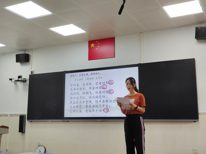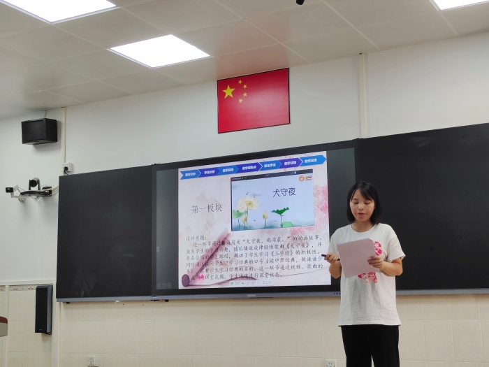 16日,組內(nèi)初賽如期舉行。13節(jié)課,13種風(fēng)格;13位青年教師,13種看家本領(lǐng)。授課內(nèi)容均選自國(guó)學(xué)啟蒙、經(jīng)典詩詞等中華優(yōu)秀傳統(tǒng)文化。有的老師運(yùn)用視頻、圖片等多媒體手段,帶領(lǐng)學(xué)生走進(jìn)詩詞,感受詩詞的韻味;有的老師深挖文本,由朗讀到吟誦再到配樂吟詠,由淺入深,引導(dǎo)學(xué)生讀中悟,體會(huì)詩人的心境;有的老師從實(shí)際出發(fā),提舉生活實(shí)例,讓學(xué)生在生活中接受傳統(tǒng)文化的熏陶,讓傳統(tǒng)美德如春風(fēng)潤(rùn)物細(xì)無聲般地浸潤(rùn)孩子的心田。執(zhí)教的老師扎實(shí)的課堂基本功、豐厚的文化底蘊(yùn)以及靈動(dòng)的課堂設(shè)計(jì)讓人印象深刻,課堂效果可謂精彩紛呈。