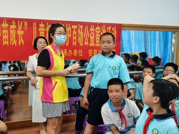 為貫徹落實(shí)“關(guān)愛女童 護(hù)苗成長”保護(hù)女童人身權(quán)益三年行動(dòng),落實(shí)2021年中山市民生實(shí)事“童心同行 護(hù)苗成長”兒童權(quán)益保護(hù)項(xiàng)目,維護(hù)婦女兒童合法權(quán)益,加強(qiáng)兒童人身安全宣傳教育,9月15日中山市婦聯(lián)聯(lián)合坦洲鎮(zhèn)安阜社區(qū)在安阜小學(xué)開展“童心同行 護(hù)苗成長”兒童權(quán)益保護(hù)百場(chǎng)公益宣講活動(dòng)。來自廣東孚律師事務(wù)所的肖靜律師給同學(xué)們帶來了題為“關(guān)愛孩子 護(hù)苗助長”的精彩法律講座。
