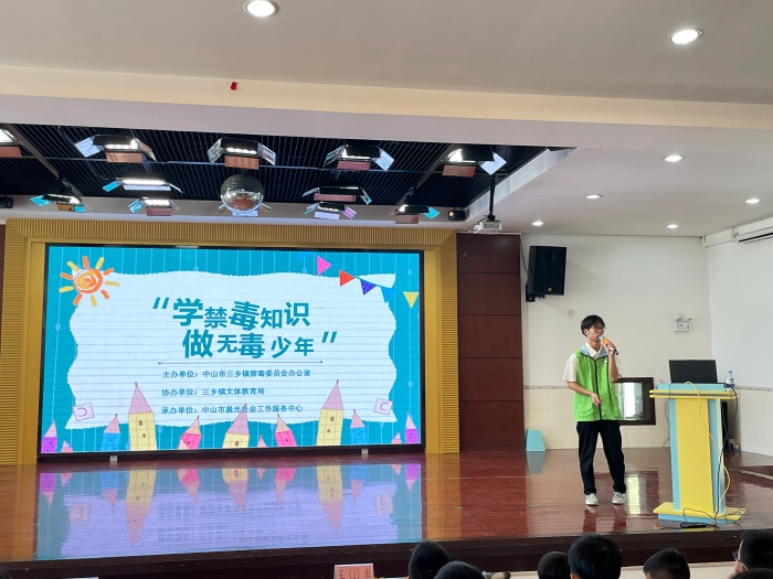 2021年9月15日上午11:00在新圩小學(xué)階梯教室,進(jìn)行了一場(chǎng)面向全體五年級(jí)學(xué)生的禁毒講座,主題為“學(xué)禁毒知識(shí),做無(wú)毒少年”。本次活動(dòng)由中山市三鄉(xiāng)鎮(zhèn)禁毒委員會(huì)辦公室主辦,三鄉(xiāng)鎮(zhèn)文體教育局協(xié)辦,由中山市晨光社會(huì)工作服務(wù)中心的志愿者們到校為同學(xué)們講解禁毒知識(shí)。