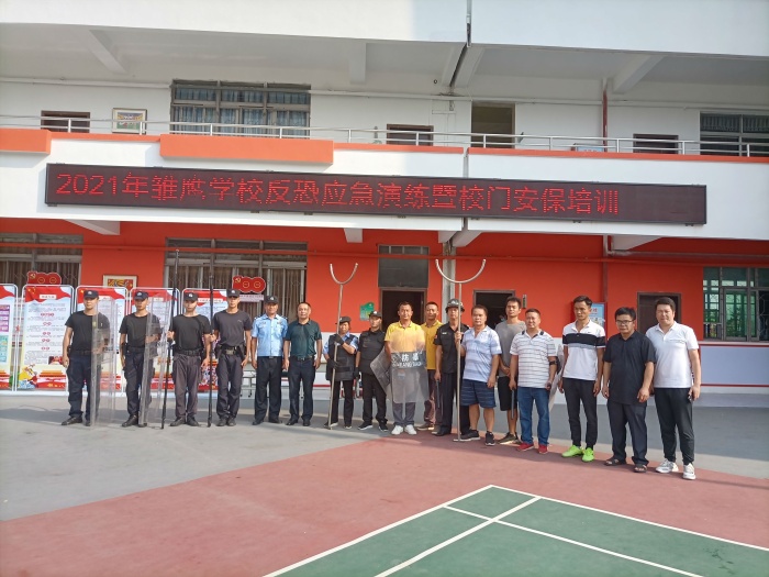 在國慶節(jié)來臨之際,為進(jìn)一步加強(qiáng)校園安全防范保衛(wèi),提高教職工面對恐怖事件的應(yīng)急處置、自護(hù)自救及保護(hù)學(xué)生有效逃生避險(xiǎn)的能力,筑牢師生安全生命線。雛鷹學(xué)校于2021年9月27日開展反恐防暴應(yīng)急演練暨校園安保培訓(xùn)。