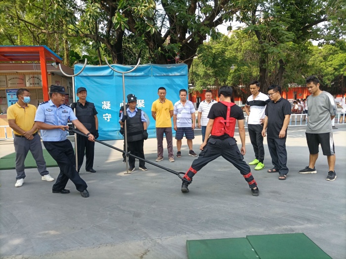 反恐演練培訓(xùn)分成了兩部分進(jìn)行。首先是講解部分,巡警大隊(duì)的李警官向校園安保、護(hù)校隊(duì)講解了學(xué)校必備的保衛(wèi)設(shè)備的使用方法,并進(jìn)行了示范和教學(xué),切實(shí)強(qiáng)化了教職工和安保隊(duì)伍對反恐器械的正確使用方法。