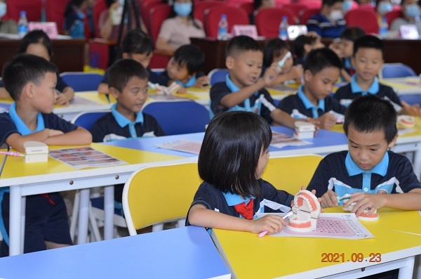 為更好地貫徹落實《學校衛(wèi)生工作條例》《健康口腔行動方案(2019-2025年)》和《健康中山行動(2020-2030年)》等有關要求,提高小學生口腔健康素養(yǎng)水平,降低兒童齲齒發(fā)生率,9月23日下午,2021年中山市教育系統(tǒng)“全國愛牙日”現(xiàn)場宣傳活動暨2021年小學生口腔健康服務項目正式啟動,本次啟動儀式由中山市教育和體育局主辦,中山市中小學衛(wèi)生保健所、南區(qū)馬嶺小學承辦。中山市教育和體育局三級調研員容彤、中山市中小學衛(wèi)生保健所黃思哲所長、南區(qū)教育和體育事務中心劉敏斯副主任、有關鎮(zhèn)街衛(wèi)生專干、各項目學校項目負責人、馬嶺小學二年級的師生一同參加了此次活動。