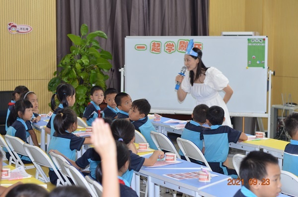 馬嶺小學高善妍同學為大家宣讀本次活動的倡議書后,由竹苑小學謝桃老師為二(1)班的同學上了一節(jié)口腔健康教育示范課。課上,謝老師扮演成“小蛀蟲”,通過繪本故事《蛀蟲日記》讓同學們學習了《一起學刷牙》。同學們在課堂上學會了如何正確刷牙,預防齲齒,掌握了口腔健康常識,邁開了自主保護牙齒的第一步。