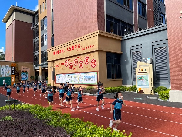 演練前,各班主任對學生進行了消防安全教育,提醒學生有秩序地從走廊、樓梯右側(cè)低頭、彎腰、捂口鼻地撤離教學樓,到操場匯合。