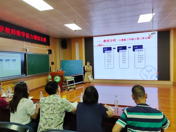 為提升教師數(shù)學專業(yè)水平,夯實教師的教學技能,加強教師教學能力,為中山市小學數(shù)學教學能力大賽做足準備。2021年9月22日,在曹二小學階梯室開展了古鎮(zhèn)鎮(zhèn)小學數(shù)學教師教學能力模擬比賽。古鎮(zhèn)鎮(zhèn)教體中心督學陳和添、鎮(zhèn)中心教研組長許琰主任出席指導(dǎo)本次活動,古鎮(zhèn)各個學校的數(shù)學科組長擔任本次比賽評委,曹二小學全體數(shù)學老師均參與本次活動。