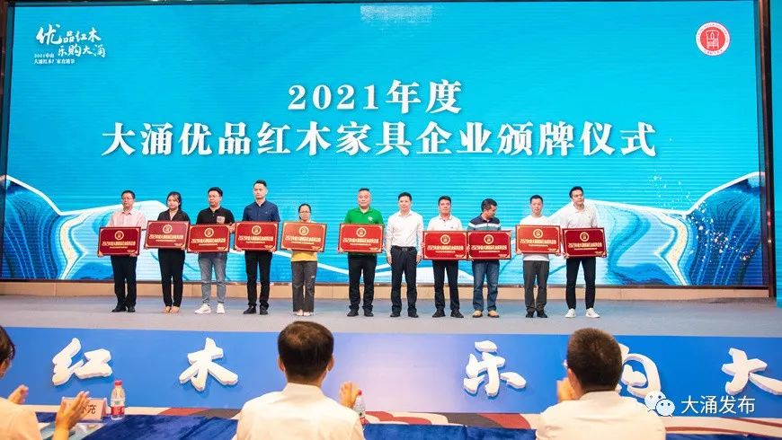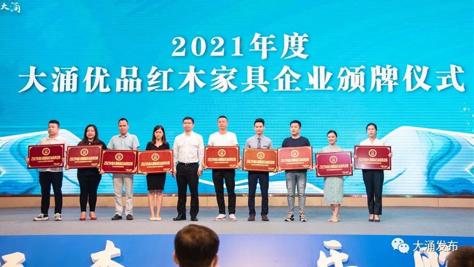 現(xiàn)場(chǎng)還向中山市伍氏大觀園家具有限公司等18家紅木企業(yè),頒發(fā)“2021年度優(yōu)品紅木家具企業(yè)”牌匾。