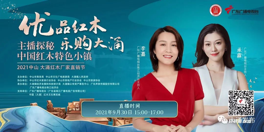 9月30日下午3:00,廣東廣播電視臺(tái)知名主持人李嘉、承霖將走進(jìn)紅木文化旅游特色小鎮(zhèn),直播探訪伍氏大觀園、紅古軒、地天泰、博大、印巷森刻等大涌紅木優(yōu)品企業(yè),與百萬(wàn)粉絲觀眾展開長(zhǎng)達(dá)兩個(gè)小時(shí)的線上紅木文化體驗(yàn)之旅。