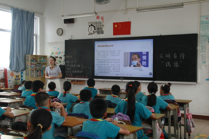 偶像,曾幾何時只是歌星、演員等,長大后,才意識到真正的偶像是舍生忘義、責任擔當,他們是不畏犧牲的革命先烈、是苦心專研的科學家、是深入基層的青年黨員干部、是奔赴一線的戰(zhàn)疫者等。青少年時期是學生形成世界觀、人生觀和價值觀的重要階段。為了引導(dǎo)學生樹立正確的世界觀、人生觀、價值觀。9月27日上午,民眾街道育才小學開展“我看偶像”主題班會課活動。