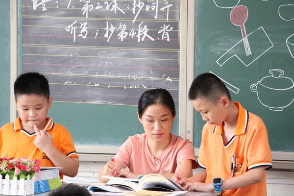 第一時段的服務(wù)內(nèi)容為作業(yè)托管。以學(xué)生自主作業(yè)、教師答疑解惑為主。老師們或耐心細(xì)致地答疑,或點對點進(jìn)行針對性輔導(dǎo),絕大部分學(xué)生能在校內(nèi)完成書面作業(yè),做到“減負(fù)不減質(zhì),松綁不松懈”。