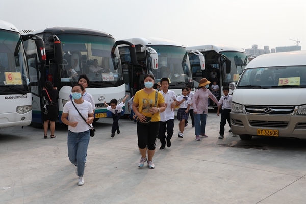 為進(jìn)一步加強(qiáng)學(xué)校校車接送的安全管理,結(jié)合學(xué)校防控防疫措施,以及對(duì)學(xué)生安全知識(shí)的宣傳和教育,提高學(xué)生乘車安全意識(shí)和防范能力,讓每位師生遇到緊急情況時(shí)能從容對(duì)待, 2021年9月30日下午,中山華附小學(xué)校區(qū)生活部開(kāi)展了校車安全疏散演練活動(dòng)。王學(xué)坤副校長(zhǎng)、柴國(guó)遠(yuǎn)副主任、生活部王靜主管和所有校車?yán)蠋?、全體乘車學(xué)生參加了此次活動(dòng)。