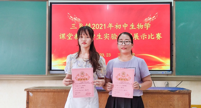 經(jīng)過激烈的角逐,評委們對參賽教師們進(jìn)行綜合評比打分,評出了一、二等獎(jiǎng)。比賽結(jié)束后,三鄉(xiāng)鎮(zhèn)理化生中心教研組組長陳春華老師為各位獲獎(jiǎng)選手頒發(fā)榮譽(yù)證書。獲獎(jiǎng)情況如下: