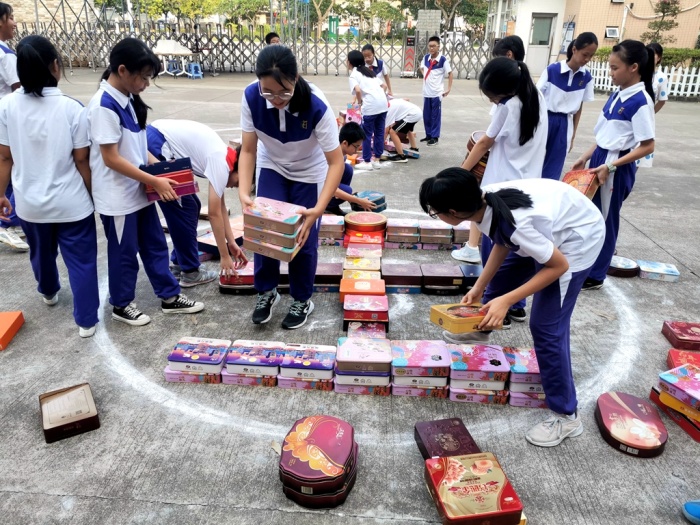 同時,學(xué)校新時代文明實踐站與永寧社區(qū)社教辦聯(lián)合舉辦“珍愛生命,綠色無毒”月餅盒造型設(shè)計比賽,初一年級10個班合作擺出了“永中——珍愛生命 綠色無毒”的造型。在造型設(shè)計中進行了浸入式禁毒宣傳教育活動,以實際行動喚起學(xué)生們防毒、拒毒意識。其中,初一(2)(6)(10)班的設(shè)計造型分別榮獲最佳造型一等獎。