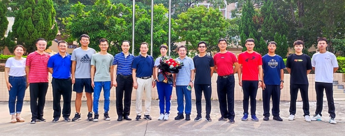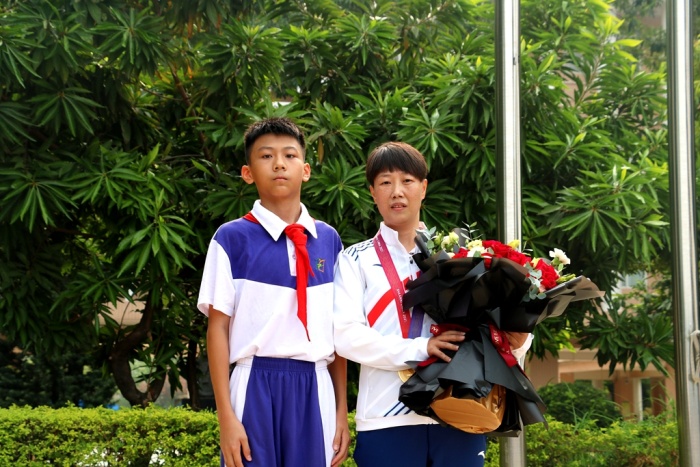 9月30日上午,中山市永寧中學在學校運動場隆重舉行“歡迎冠軍回家 弘揚冠軍精神”的特別升旗儀式。祝賀永寧中學孫麗艷老師在中華人民共和國第十四屆全國運動會毽球女子三人賽中斬獲全國冠軍。