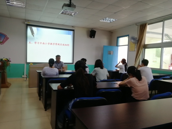 教學(xué)常規(guī)是教學(xué)工作的基礎(chǔ),只有扎實(shí)抓好常規(guī)工作,才能不斷提升教學(xué)質(zhì)量,為進(jìn)一步促進(jìn)課堂教學(xué)改革,培養(yǎng)教師的基本功,提升教師業(yè)務(wù)素質(zhì),確保學(xué)校教學(xué)工作有序高效進(jìn)行。9月29日,中南小學(xué)校長(zhǎng)黃權(quán)炎、教務(wù)主任楊雨對(duì)新教師進(jìn)行了教學(xué)常規(guī)培訓(xùn)。