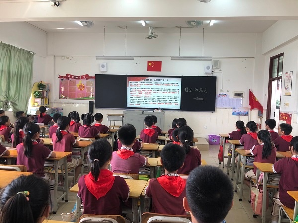 四五年級(jí)的學(xué)生則以《信念的顏色》為主題,講述了孟晚舟事件,描述了五星紅旗是信念的燈塔,中國(guó)紅是信念的顏色,“沒有大國(guó)崛起,何來民族的尊嚴(yán)”等內(nèi)容,孟晚舟女士堅(jiān)韌的品格、樂觀的精神以及身處困境仍不忘學(xué)習(xí)的習(xí)慣值得每個(gè)學(xué)生學(xué)習(xí)。班主任還讓學(xué)生上臺(tái)談感悟,說自己的想法。最后班主任借用梁?jiǎn)⒊壬f的這句話:“少年智則國(guó)智,少年富則國(guó)富,少年強(qiáng)則國(guó)強(qiáng)!”去勉勵(lì)學(xué)生努力學(xué)習(xí),做一名自強(qiáng)、自信的七彩少年。