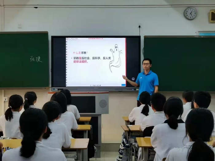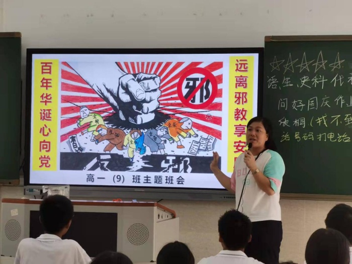 主題班會活動期間,班主任通過展示圖片、播放音像資料、呈現(xiàn)受害案例等形式,向?qū)W生講解邪教的本質(zhì)、社會危害和我國防范邪教的相關(guān)法律法規(guī),指導(dǎo)學(xué)生如何識邪、防邪和反邪,進一步加深學(xué)生對邪教組織的認識,增強學(xué)生防范邪教的意識,提升學(xué)生保護自我、抵制邪教侵害的能力。29日當晚,德育處集中進行反邪教警示教育,向全體學(xué)生發(fā)出反邪教倡議,提醒同學(xué)們要警惕打著各種幌子大肆宣揚歪理邪說的邪教組織,自覺樹立崇尚科學(xué)、反對邪教的意識,增強明辨是非的能力。