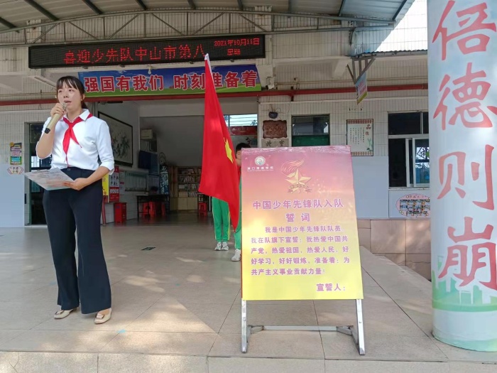 10月11日,在中國少年先鋒隊即將成立72周年之際,港口港源學(xué)校利用周一升旗儀式的時間,舉行了“請黨放心,強(qiáng)國有我——喜迎少先隊中山市第八次代表大會”少先隊微儀式活動。