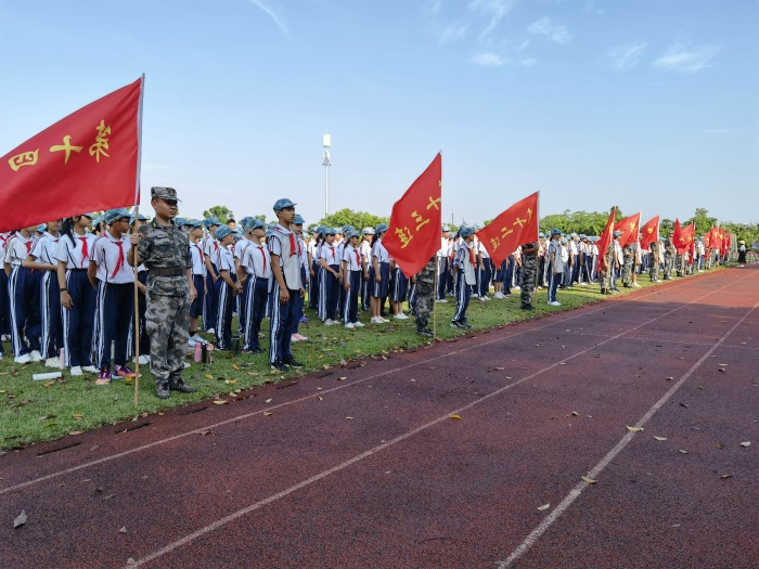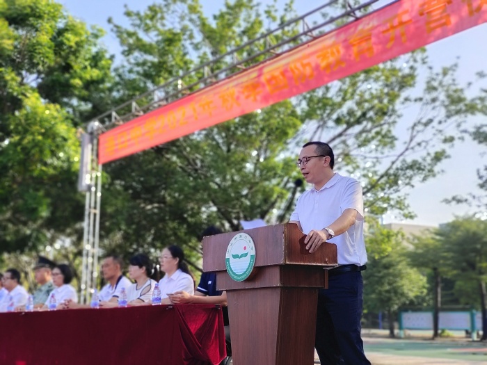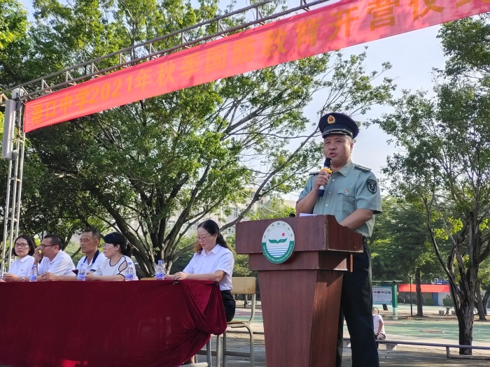 為了強(qiáng)化學(xué)生的國防意識,進(jìn)一步培養(yǎng)學(xué)生的愛國情操,增強(qiáng)班集體的凝聚力和向心力,提升學(xué)生健康的身心素養(yǎng),2021年10月11日,中山市港口中學(xué)初一新生舉辦了國防教育開營儀式。教育和體育事務(wù)中心劉憲軍主任、鎮(zhèn)武裝部副部長賀洪彪先生、學(xué)校廖志堅(jiān)校長攜同全體行政、初一各班班主任出席了本次活動(dòng)。