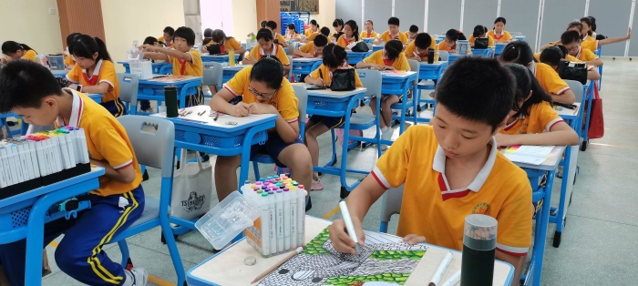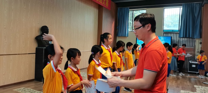 經(jīng)過一小時的比賽,同學(xué)們完成了作品的創(chuàng)作,各評委老師分別評出了繪畫組和書法組的一、二、三等獎。書法組負責(zé)人柏遠平老師、鄭紅玉老師暨對此次的書法比賽取得的進步進行了表揚,同時也指出了同學(xué)們應(yīng)該改進的方向。轉(zhuǎn)眼看向繪畫組這邊,藝術(shù)科組長和美術(shù)老師廖月玲對可取之處和不足之處分別做了點評。最后陳敏華校長總結(jié)了此次活動的重要意義,希望在以后的日子里同學(xué)們不斷提高綜合素養(yǎng),賡續(xù)百年初心,弘揚偉大愛國精神,少年兒童應(yīng)該自覺融入國家發(fā)展大局,為中華民族偉大復(fù)興中國夢貢獻力量,共享民族復(fù)興的榮光。