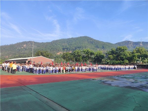 10月11日升旗儀式開(kāi)展了“請(qǐng)黨放心 強(qiáng)國(guó)有我---喜迎少先隊(duì)中山市第八次代表大會(huì)”少先隊(duì)徽儀式。秋風(fēng)瑟縮,盡管運(yùn)動(dòng)場(chǎng)上有前一天大雨留下的許多腳印,但抵擋不了隊(duì)員們參加少先隊(duì)徽儀式的熱情。鮮艷的中隊(duì)旗在迎風(fēng)飄揚(yáng),隨風(fēng)舞動(dòng)的紅領(lǐng)巾如隊(duì)員們激動(dòng)的心一樣不停地顫動(dòng)。隊(duì)徽儀式在莊嚴(yán)的國(guó)歌聲中拉開(kāi)了序幕,全體少先隊(duì)員面向黨旗、團(tuán)旗、隊(duì)旗做到“四個(gè)一”:敬一個(gè)隊(duì)禮、唱一次隊(duì)歌、重溫一次誓詞、莊嚴(yán)呼號(hào)一次。