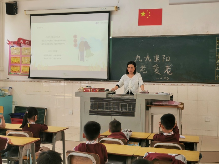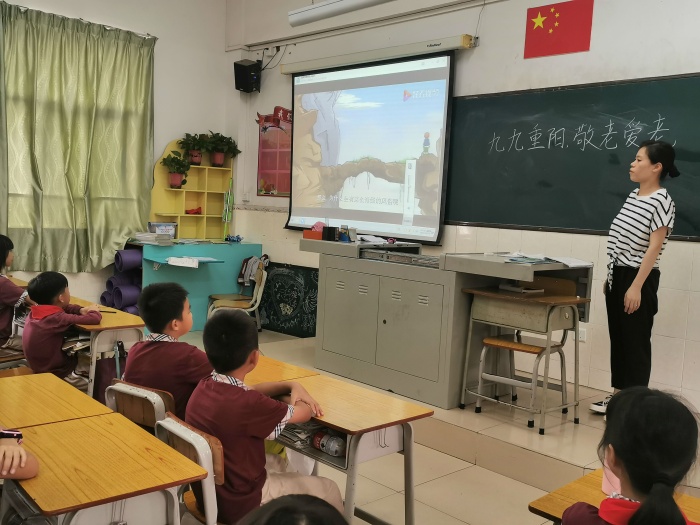 “百善孝為先" ,孝順父母,尊敬長輩,是中華民族的傳統(tǒng)美德。新圩小學德育處陳文麗主任先通過廣播向全校學生發(fā)出倡議,引導學生要弘揚中華民族尊老敬老的傳統(tǒng)美德,營造良好的愛老助老社會氛圍,展現(xiàn)當代新圩水滴娃的精神風貌,倡議學生一要樹立敬老之心,二要奉獻孝老之意,三傳遞助老之情,學會關(guān)愛身邊的每一位老人, 讓老年人(尤其是自己身邊的爺爺奶奶、外公外婆)在重陽佳節(jié)過得更有價值、有意義,讓他們體會到節(jié)日的快樂,讓他們的生活更加幸福。接著由班主任老師通過PPT給學生講解重陽節(jié)的由來及意義,透過視頻故事更直接生動地讓學生了解這一傳統(tǒng)節(jié)日---重陽節(jié)。