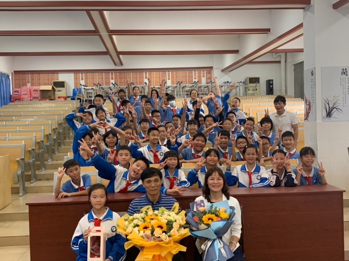 為弘揚(yáng)人民教師教書育人的高尚品格,進(jìn)一步提升教師的幸福感,營造濃厚的尊師氛圍,激發(fā)學(xué)生熱愛老師濃厚感情,2021年10月14日上午,四沙小學(xué)舉行了主題為“春風(fēng)化雨四十載 桃李芬芳香滿園”的羅松根老師光榮退休師德主題活動。四6班、六7班全體師生和全體行政在主會場階梯室參加,其他年級師生在課室通過釘釘直播收看。