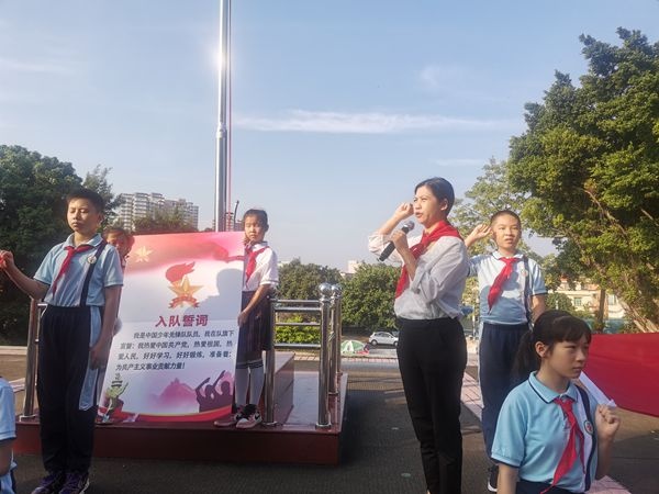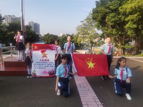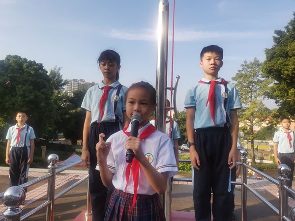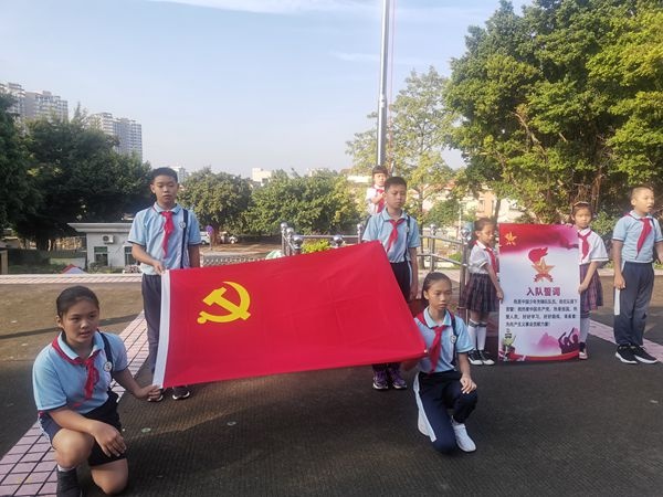 10月11日早上,沙溪鎮(zhèn)中心小學(xué)一如既往地進行莊嚴(yán)的升旗禮活動,但與平時不一樣的是,為宣傳貫徹習(xí)近平總書記“七一”重要講話精神,貫徹落實習(xí)近平總書記關(guān)于少年兒童和少先隊工作的重要論述,認真落實《中共中央關(guān)于全面加強新時代少年先對工作的意見》和少先隊第八次全國代表大會提出的“著力邁向社會、進軍線上,加強社會化工作體系建設(shè)”的工作部署,同時為了迎接少先隊中山市第八次代表大會的到來,這里正在舉行一場特別的少先隊微儀式 ,主題為“請黨放心,強國有我”。