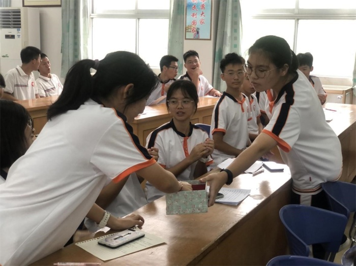 接下來,活動分批依次進行。參賽選手抽簽后,根據(jù)順序前往直播室候場備賽,其余選手回到教室通過一體機觀摩賽況。直播間鏡頭下的選手們自信開朗,侃侃而談,與賽場外觀摩直播的師生積極互動,涌現(xiàn)出一批“人氣主播”。專業(yè)課教師根據(jù)參賽選手的表現(xiàn)進行實時點評,與在教室收看直播的同學們分享直播干貨,同學們認真地進行學習記錄,并紛紛表示獲益良多。