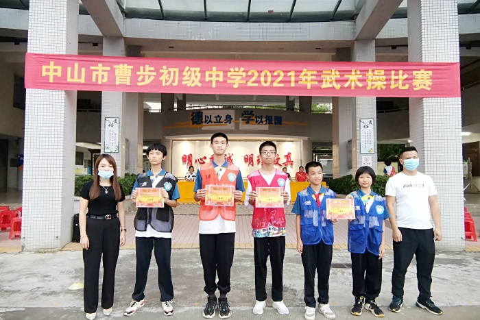 一場課間操比賽,一個以年級為單位的集體活動,給每個同學提供了展示的舞臺,同學們收獲滿滿。從開學到現(xiàn)在曹中一直掀起了學習武術(shù)操的熱潮,賀坤老師在每節(jié)課、每個課間操時認真教學,其他體育老師在體育課認真指導(dǎo),各班主任在課余時間鞏固訓練。在大家的共同努力之下才取得現(xiàn)在這樣的好成績。比賽采取現(xiàn)場打分,最后去掉一個最高、一個最低進行排名,按最終成績進行頒獎。