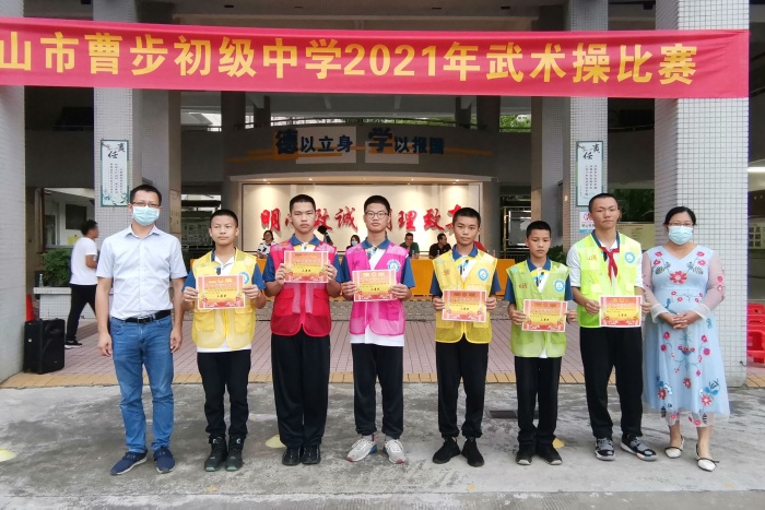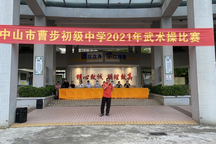 為了更好地促進曹步初級中學學生身體素質(zhì)的提高,全面推行學校特色項目的發(fā)展,促進體藝2+2項目的建設(shè),檢測初一、初二學生課間操的學習成果,以“習慣養(yǎng)成”為原則,規(guī)范學校管理,加強班風班貌和精神文明建設(shè),加強德育、智育、體育的發(fā)展和合作,全面增強班級凝聚力,促進學風、校風建設(shè),使課間達到規(guī)范化、熟練化、美觀化,2021年10月20日下午,曹步初級中學在中大堂前舉行了初一、初二級課間操行為規(guī)范比賽暨武術(shù)操比賽,本次活動由體育老師賀坤主持,初一初二全體同學和部分家長參加了本次活動,學校領(lǐng)導(dǎo)和部分家委擔任本次活動的評委。