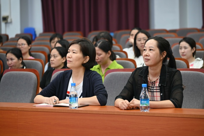 鐘委員充分肯定了林校長講座的實效性,并就“以愛育人”發(fā)表了自己的看法,她結(jié)合實際生活經(jīng)驗,向在座老師提出兩點感受:一是心地以外,別無功夫;二是愛需要技術(shù),師愛并非溺愛。鐘委員爽直利落的一席話,讓在座的老師受益匪淺。