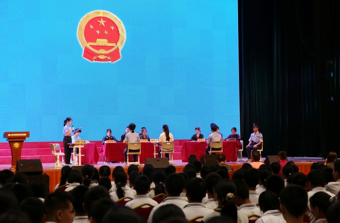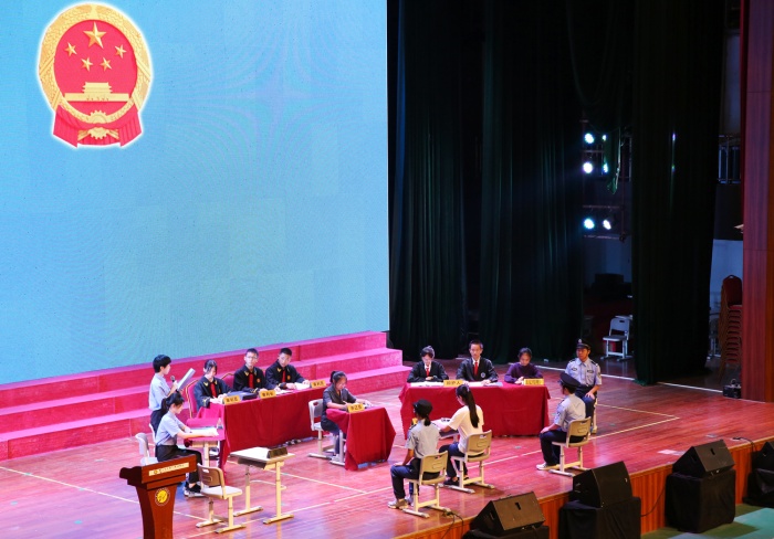 模擬法庭上,卓雅外校的學(xué)生分別飾演了審判長(zhǎng)、審判員、人民陪審員、書(shū)記員、公訴人、辯護(hù)人、被告人、法警等角色,詳細(xì)還原案件的審判過(guò)程。臺(tái)下的同學(xué)們“零距離”感受法庭的威嚴(yán)和法律的嚴(yán)肅,通過(guò)觀看這樣一場(chǎng)“真實(shí)”的審判,大家深刻認(rèn)識(shí)了尋釁滋事罪的危害和后果。