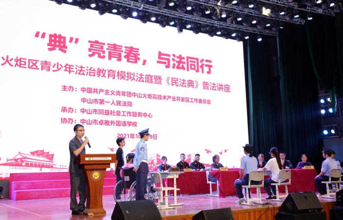 本次活動(dòng)由中國(guó)共產(chǎn)主義共青團(tuán)中山火炬高技術(shù)產(chǎn)業(yè)開(kāi)發(fā)區(qū)工作委員會(huì)、中山市第一人民法院主辦,中山市同益社會(huì)工作服務(wù)中心承辦,中山市卓雅外國(guó)語(yǔ)學(xué)校協(xié)辦。中山市火炬開(kāi)發(fā)區(qū)法庭副庭長(zhǎng)鄧文輝法官、卓雅外校副校長(zhǎng)李文等參加活動(dòng)。
