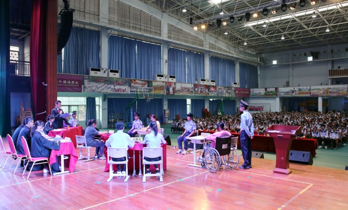 模擬法庭”結(jié)束后,鄧文輝法官為本次模擬法庭做現(xiàn)場(chǎng)指導(dǎo),讓現(xiàn)場(chǎng)同學(xué)們明白“‘未成年’不代表可以肆意妄為”,為同學(xué)講解校園早戀的危害,希望同學(xué)們珍惜校園生活,珍惜身邊同學(xué),珍惜自己美好的青春。