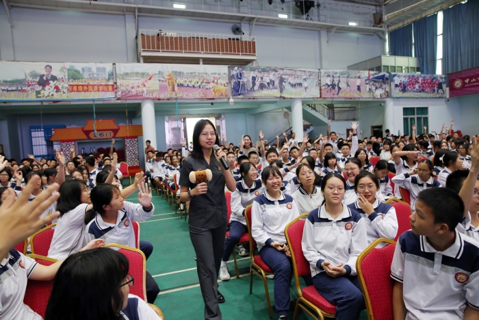 為了激發(fā)同學(xué)們對(duì)學(xué)習(xí)了解法律的興趣,中山市第一人民法院審判管理辦公室法官助理吳娟歡為大家開(kāi)展民法典普法互動(dòng)活動(dòng)。同學(xué)們踴躍舉手發(fā)言提問(wèn),現(xiàn)場(chǎng)氣氛熱烈,掌聲不斷。