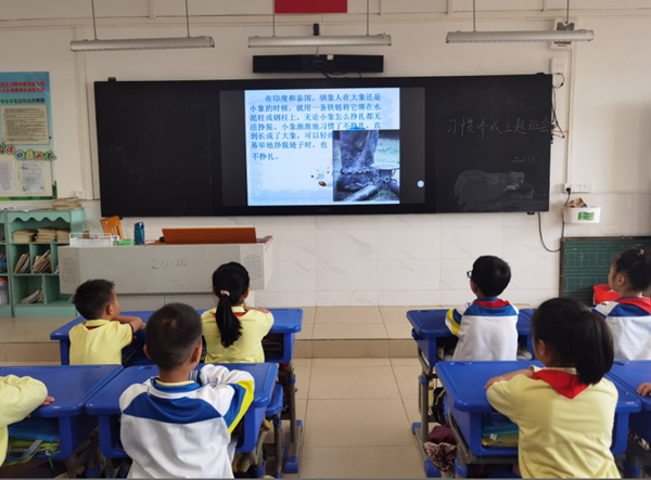 活動中,老師們給同學們分享了通用英語的新加坡用中文書寫標語提醒中國游客講文明以及國慶節(jié)后天安門廣場隨處可見口香糖殘跡的小故事,來告訴同學們講文明、懂禮貌的重要性。在老師的引領(lǐng)下,同學們坐姿端正、全神貫注,再次溫習了個人禮儀、尊師禮儀、課堂禮儀、排隊禮儀、升旗儀式、文明就餐、愛護公共場所等各個方面的文明禮儀。