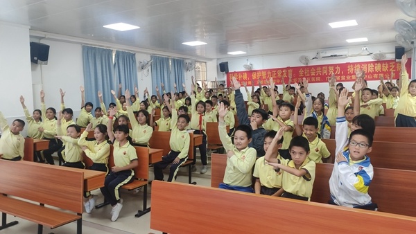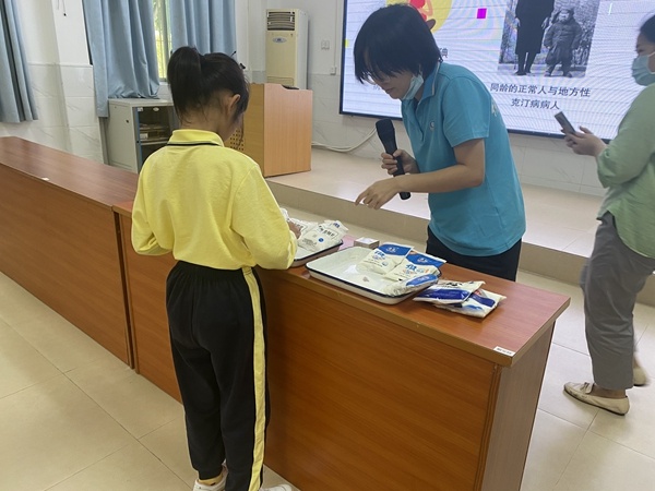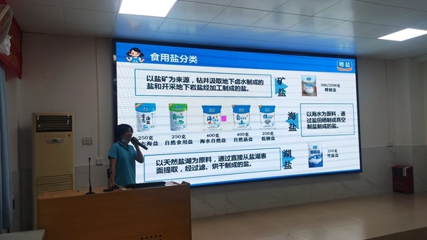 接著,由廣東省鹽業(yè)集團(tuán)中山有限公司的老師介紹如何“安全用鹽 健康生活”,在講授的過程中讓學(xué)生了解到食鹽的分類,如何區(qū)分真假鹽,如何科學(xué)用鹽。在真假鹽辨別的環(huán)節(jié)中,在場(chǎng)的老師通過活動(dòng)的形式教會(huì)了學(xué)生可以通過看包裝兩側(cè)折痕、查看鐳射防偽標(biāo)識(shí)等方法進(jìn)行區(qū)分,在現(xiàn)場(chǎng)中還邀請(qǐng)同學(xué)一起做起了科學(xué)小實(shí)驗(yàn),學(xué)生們反應(yīng)熱烈,參與度極高。講座結(jié)束后,為了加深學(xué)生的理解,現(xiàn)場(chǎng)給每一位學(xué)生派發(fā)了宣傳單和一包小禮物“海鹽”,讓學(xué)生回去一同與家長(zhǎng)們分享今天的活動(dòng)。