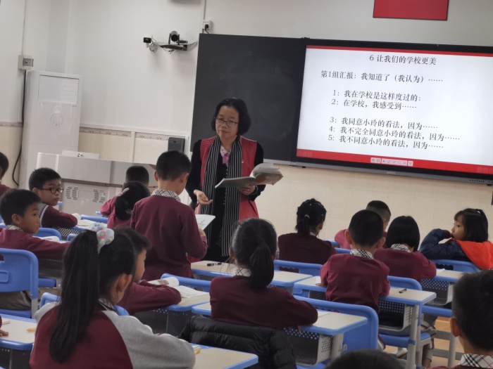 肖志紅校長始終認(rèn)為學(xué)生才是課堂的主體,應(yīng)給學(xué)生思考的空間,展示的舞臺,因此,這節(jié)課始終以學(xué)生自學(xué)、匯報為主,貼近學(xué)生的生活實際。以小組匯報為主的課堂形式,大大提高了道德與法治的課堂教學(xué)效率,鍛煉了學(xué)生的學(xué)習(xí)能力。