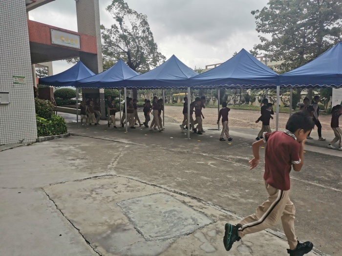 警報聲一響,模擬有易燃物著火發(fā)出濃煙,學(xué)生馬上雙手捂住口鼻,逃避開校園建筑物,在教師的引導(dǎo)下迅速按指定路線有序疏散,班主任自始至終跟隊,密切關(guān)注演練現(xiàn)場,維持活動紀律,防止意外發(fā)生。學(xué)生疏散到指定的安全區(qū)域后,各班班長迅速集合,清點人數(shù)并向總指揮匯報情況。雖然天公不作美,剛疏散到一半,馬上就下起了大雨,但是老師們和同學(xué)們都能沉著冷靜、互相合作,一切行動聽從指揮,有序到達能避雨的地方排好隊,不慌亂,以較快的速度,圓滿地完成了此次緊急疏散的演練任務(wù)。