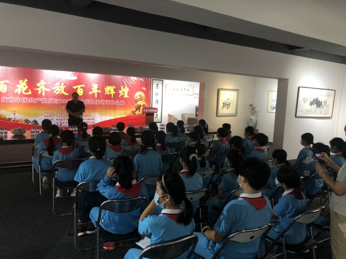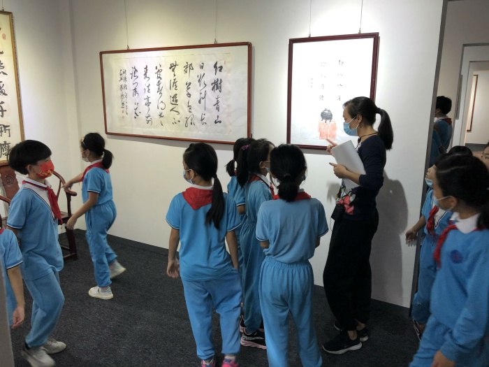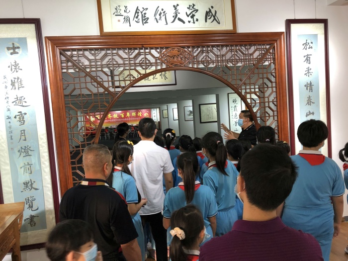 揭牌活動(dòng)當(dāng)天適逢中山市成榮美術(shù)館《百花齊放 百年輝煌—-慶祝中國(guó)共產(chǎn)黨建黨一百周年全國(guó)名家書畫作品展》展覽期間,美術(shù)館張成榮館長(zhǎng)和載德小學(xué)余烜軍老師耐心地向同學(xué)們講解中國(guó)傳統(tǒng)文化之魅力,引導(dǎo)孩子們學(xué)習(xí)中華藝術(shù)的興趣!