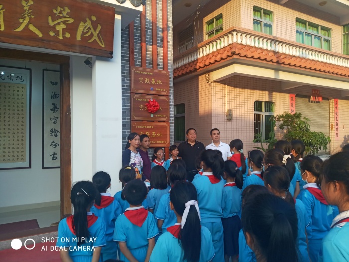 為深入推進(jìn)學(xué)校中華優(yōu)秀傳統(tǒng)文化教育,扎實(shí)開展實(shí)踐育人活動(dòng),10月19日下午,中山市三鄉(xiāng)鎮(zhèn)載德小學(xué)“中華優(yōu)秀傳統(tǒng)文化實(shí)踐教育基地”掛牌儀式在中山市成榮美術(shù)館舉行。中山市成榮美術(shù)館張成榮館長(zhǎng)、中山市三鄉(xiāng)鎮(zhèn)載德小學(xué)廖水明主任,梁冬華老師、李紅梅老師、書法美術(shù)藝術(shù)特長(zhǎng)生等60余人參加了揭牌儀式。
