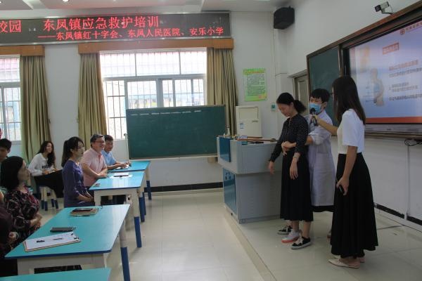 為進一步加強全市教育系統(tǒng)應急救護工作,提高廣大師生自救自護技能,提高應急救護知識普及率,11月5日上午,東鳳鎮(zhèn)紅十字會聯(lián)合東鳳人民醫(yī)院在安樂小學舉辦愛“救”在校園——東鳳鎮(zhèn)應急救護培訓。安樂小學全體教師及一百多名學生代表在階梯室參加應急救護培訓。