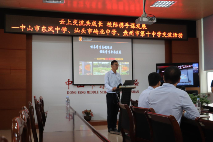 交流活動中,中山市東鳳中學劉喜全校長首先致辭。他強調了三校結對幫扶合作交流的重要意義,希望三??梢詫崿F(xiàn)共建共享、互助成長,構筑教育教學事業(yè)的同心圓。隨后,劉喜全校長、蔡偉洲校長、盤州市第十中學戴震副校長分別對本校的基本情況、師資生源等情況作了全面的介紹。