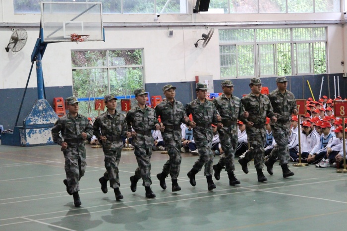 下午,高一學(xué)子們以連為單位,開始了軍訓(xùn)。同學(xué)們認(rèn)真聽教官講解,絲毫不敢懈怠,第一天的軍訓(xùn)內(nèi)容包括軍姿、跑步行進(jìn)與立定等,接下來幾天,還有跑操隊形訓(xùn)練、整理內(nèi)務(wù)、軍歌、軍體拳等內(nèi)容。藍(lán)天白云天公作美!學(xué)校建設(shè)如火如荼,青年學(xué)子朝氣蓬勃!第一天的軍旅生活結(jié)束了,每一位同學(xué)也許步伐還未矯健,但是已經(jīng)懂得昂首挺胸。他們用所有的興奮和熱情對待軍訓(xùn)中的每一項活動。